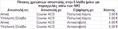 Για αγορές άνω των 50€ ΔΩΡΕΑΝ ΑΠΟΣΤΟΛΕΣ